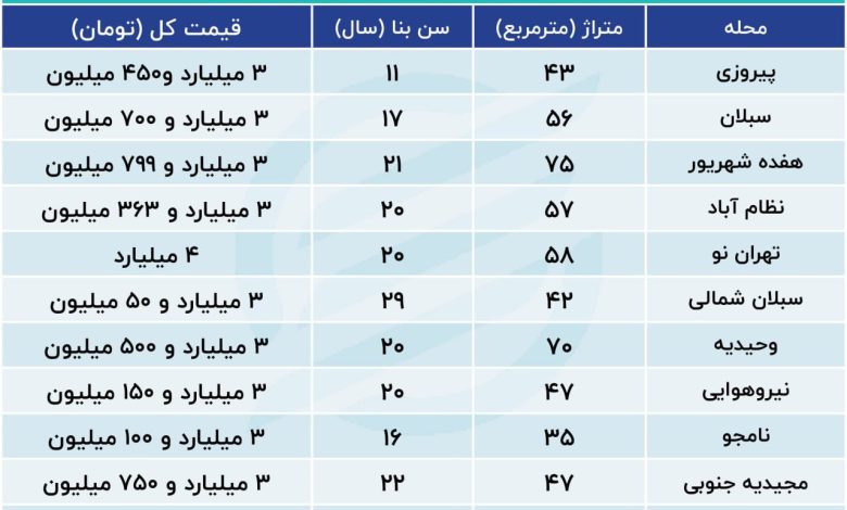 لیست آپارتمان های ۳ میلیاردی تهران | با سه میلیارد کجا میتوان خانه خرید؟